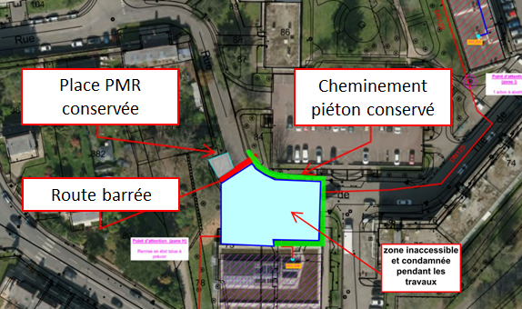 Il sera mis en place un barriérage pour garantir la sécurité aux abords des travaux. Il est recommandé de suivre la signalisation temporaire ainsi que les indications des agents présents sur site. L'ensemble des informations sur les travaux sont régulièrement mises à jour.