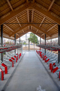 L’autre nouveauté, c’est la maison des mobilités. Pensée pour accompagner le développement des mobilités douces, elle fluidifie les déplacements en permettant de passer facilement du vélo au train ou du train au taxi. Elle s’intègre dans le réseau cyclable du territoire, à un moment où se termine la piste cyclable qui démarre à place de la Résistance. Le bâtiment, protégé par une toiture à deux pans, comprend un abri vélo couvert de 124 m² pouvant accueillir de manière sécurisée jusqu’à 140 vélos (y compris des vélos cargos) et un espace intérieur pour le bureau des taxis de Quimper.