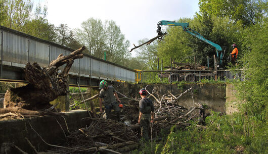 Intervention sur le Steïr : retrait des embâcles au Moulin VertSuite aux intempéries de janvier dernier, de nombreux bois flottants le long du Steïr se sont accumulés dans l’ouvrage de Moulin Vert. Le retrait des embâcles au Moulin Vert s’est déroulé le vendredi 17 avril matin.