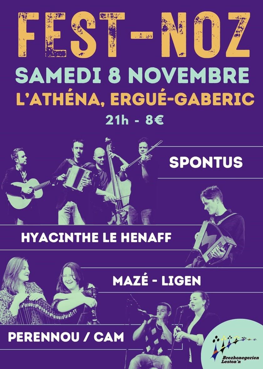 Avec le groupe Spontus, le couple Aël-Anna Mazé (chant, harpe, bombarde) et Clémence Ligen (chant), les musiciens Hyacinte Le Hénaff, Judith Cam et Yohann Pérennou.