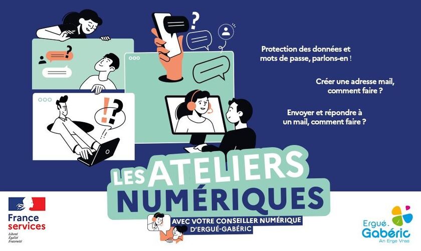 Tout au long de l'année, des ateliers en petits groupes vous sont proposé par Ludovic, conseiller numérique à la ville d'Ergué-Gabéric pour apprendre à manier l'outil numérique. Les ateliers sont ouverts à tous, dans la limite de 6 personnes par atelier.