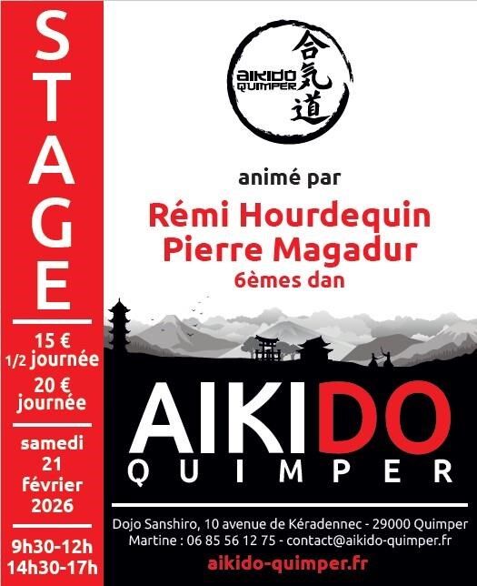 Stage d'aïkido animé par deux 6e dan, ouvert à tous les pratiquants, licence d'aïkido nécessaire.