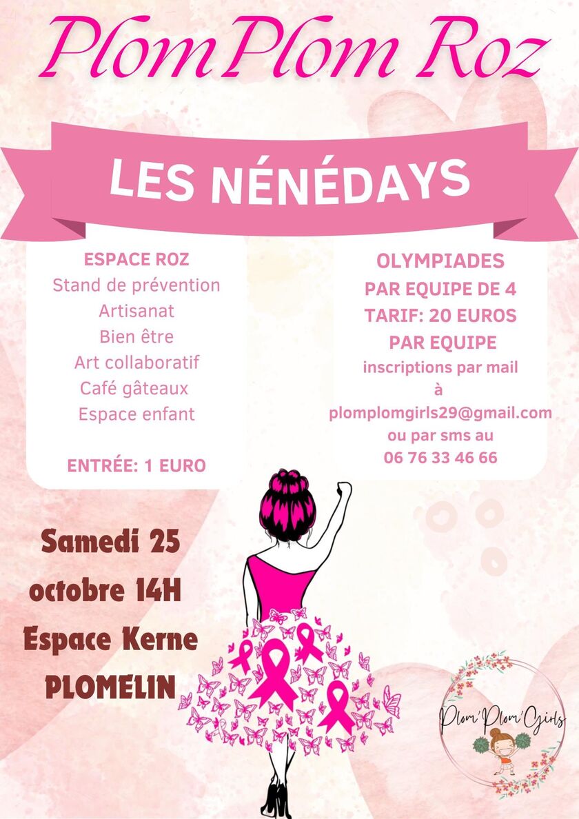 Venez passer une belle après-midi à Plomelin pour une belle cause. Bonne humeur et convivialiaté au rendez-vous. Olympiades, prévention, bien-être et DIY au programme de cet après-midi.