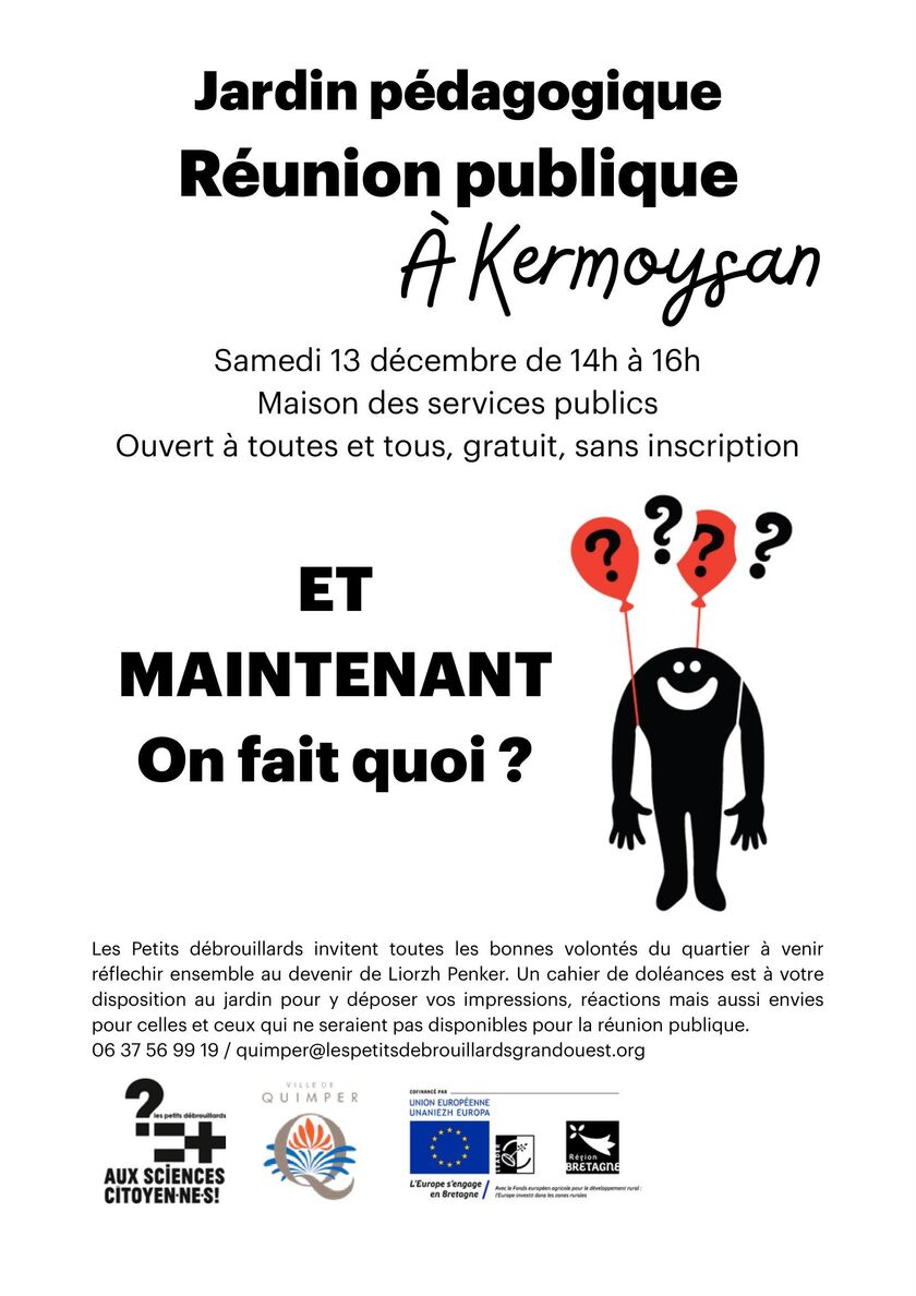 « Et maintenant, on fait quoi ? », Les Petits Débrouillards animent le jardin depuis juillet en tant qu'association de culture scientifique. L'objet de cette réunion est de partager votre avis sur ce qui a été fait jusqu'à présent et de formuler vos recommandations.