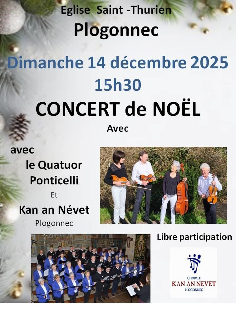 Pour son concert de Noël, la chorale Kan an Nevet accueille le quatuor Ponticelli. La première partie sera assurée par Kan an Nevet qui chantera Noël, suivie du quatuor Ponticelli avec un répertoire de musique classique en seconde partie, pleine d'émotion et de magie.