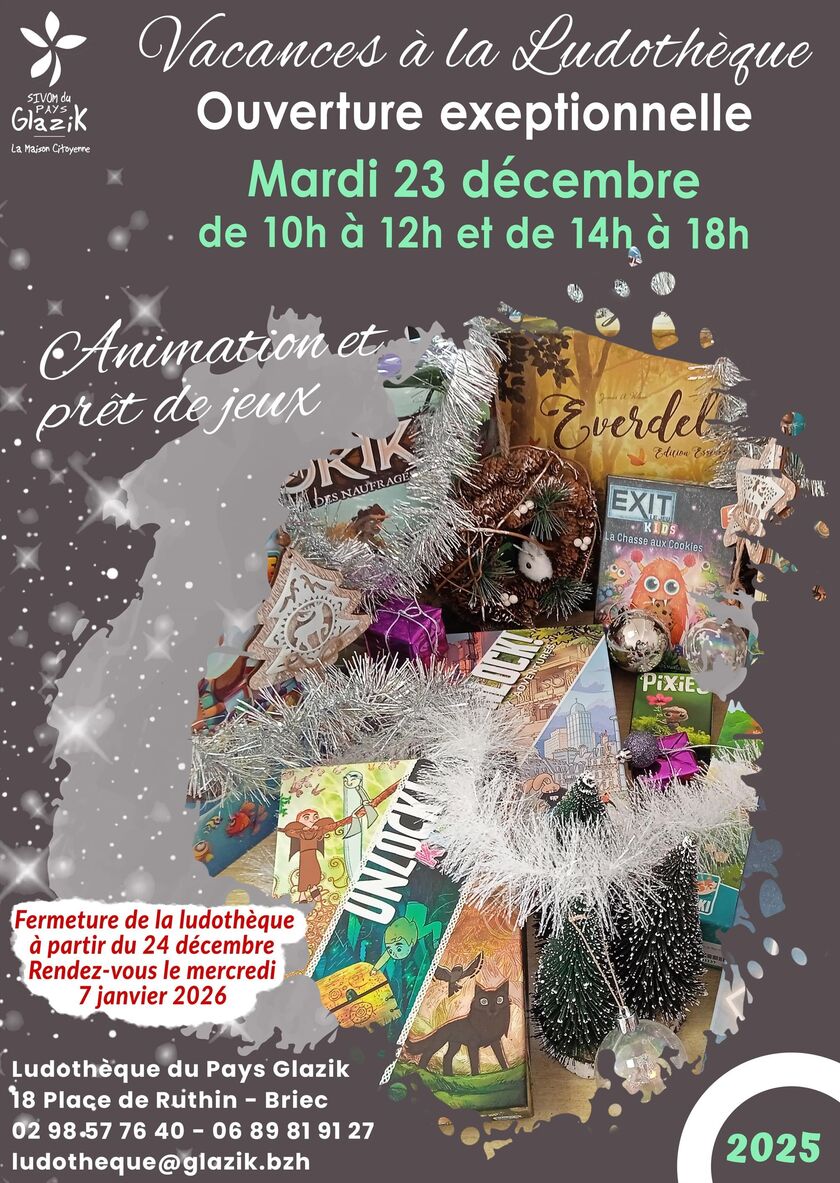 Ouverture exceptionnelle de la Ludothèque du Sivom du Pays Glazik