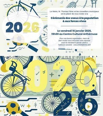 Monsieur Thomas Férec, maire de Briec-de-l'Odet, et le conseil municipal ont le plaisir de vous inviter à la cérémonie des vœux à la population et aux forces vives. Inscriptions par mail.