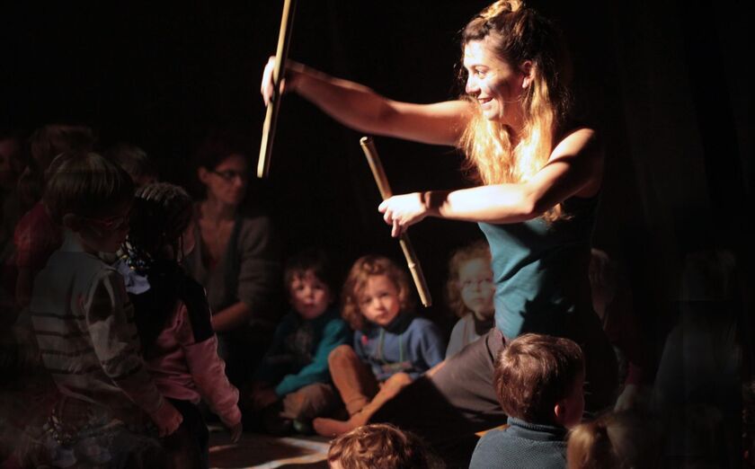 Dans le cadre des Semaines de la Petite Enfance. Sur le sol, une page blanche, espace ouvert à la créativité et à l'imagination. Ensemble, on y invente une histoire, sans un mot. Une histoire dans laquelle chacun trouve sa place. Où chacun laisse sa trace.