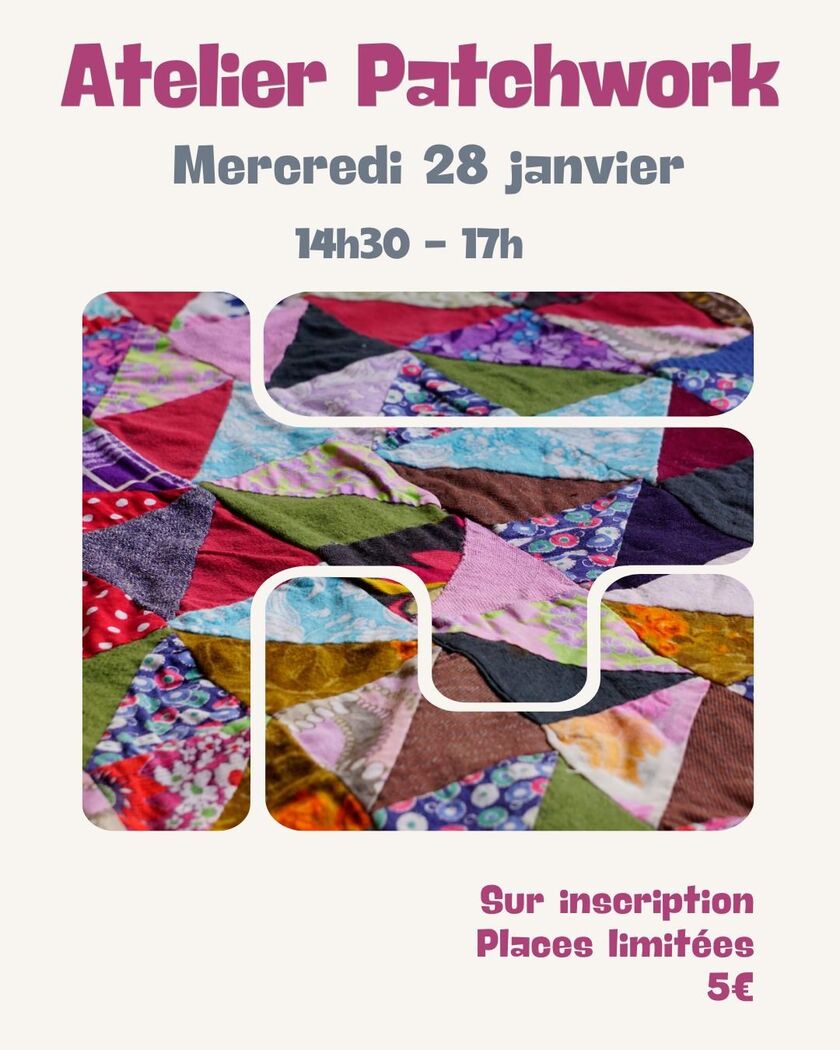 Atelier de 2h30 pour découvrir l'art du patchwork. Matériel fourni. Vous maniez déjà la machine à coudre mais n'avez pas encore tenté le patchwork et pourtant l'assemblage de carrés de tissus vous fait de l'œil ! C'est le moment où jamais de vous lancer avec Elisabeth.