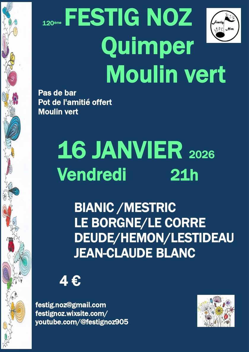 1er Festig Noz de 2026 : Bianic et Mestric, Le borgne et Le Corre, Deude, Hemon et Lestineau, Jean-Claude Blanc.