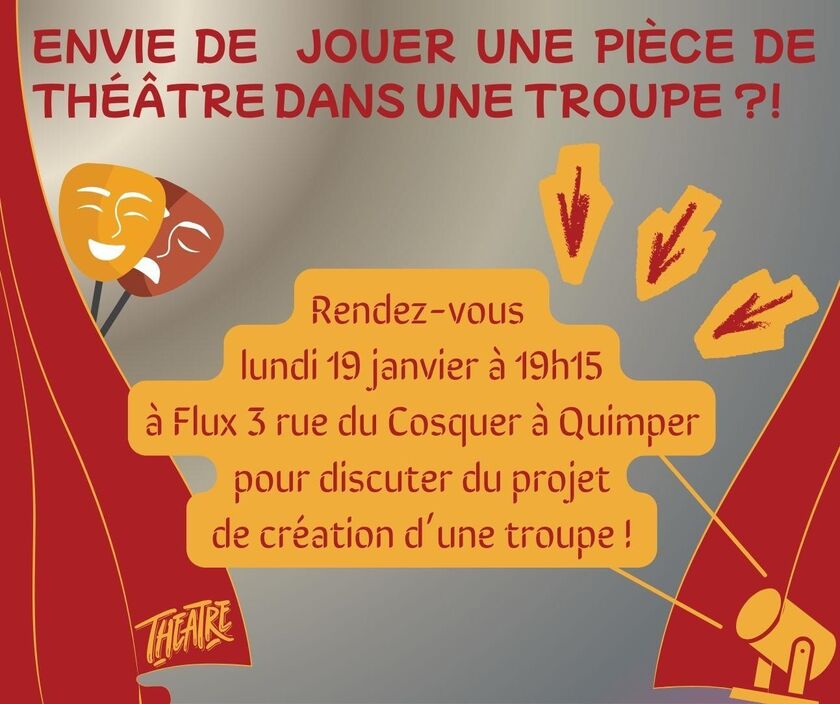 Envie d'essayer le théâtre ? Ou de participer à un projet avec une autre approche ? Nous lançons une troupe de théâtre à Flux en vue de monter une pièce. Il n'y a pas de prérequis nécessaires pour rejoindre l'aventure.