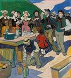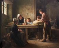 Adrien : « À la distillerie du Maout, l'œuvre d'Henri Delavallée nous a tout de suite parlé. Cette scène de battage du blé reflète notre quotidien à la ferme et notre travail avec les céréales, à la base de nos créations. Le mouvement vif des fléaux et la lumière qui éclaire la scène évoquent le rythme, l'énergie et le soin que nous mettons à faire de nos céréales de vrais spiritueux d'exception. »
