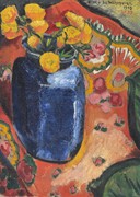 Anita : « J'ai été immédiatement attirée par l'éclat des couleurs vives de ce tableau, qui font écho à l'univers de mon magasin. Le contraste lumineux entre les fleurs orangées et le bleu profond du vase dégage une énergie solaire et moderne. Pour moi, cette œuvre illustre parfaitement comment la couleur peut transformer un intérieur simple en un lieu de vie rempli de joie et de caractère. »